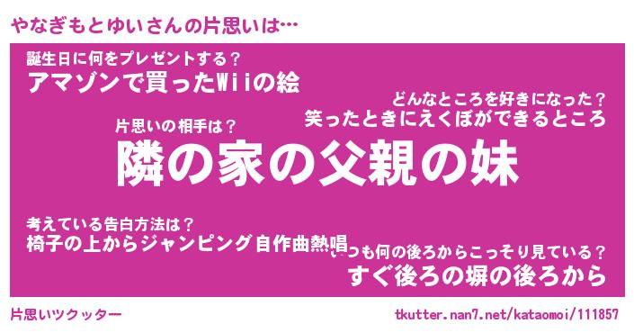 | 恥ずかしいあだ名 | 『プリティーやなぎもとゆい』『やなちん』 |