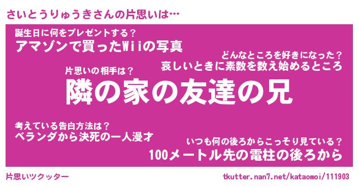 | 胡散臭い通販商品みたいなあだ名 | 『必ず成功する霊験あらたかなお札…その名も「さいとうりゅうき」』 |