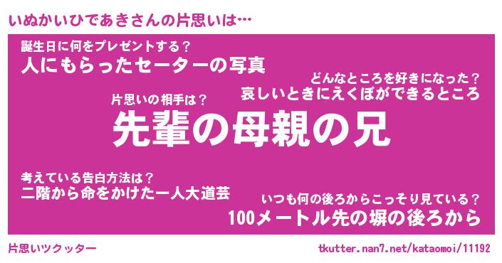 | ヘコむあだ名 | 『いぬにー』『レバニラ』『いぬお』 |