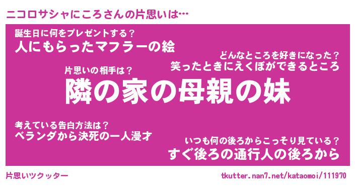 | 胡散臭い通販商品みたいなあだ名 | 『必ず成功するブレスレット…その名も「ニコロサシャにころ」』 |