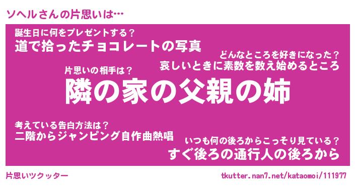 | ヘコむあだ名 | 『ソヘにゅー』『豆乳』『ソヘ太郎』 |