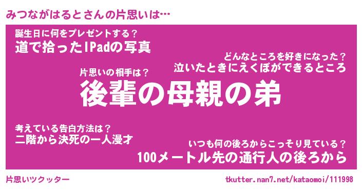 | 胡散臭い通販商品みたいなあだ名 | 『億万長者になれるブレスレット…その名も「みつながはると」』 |
