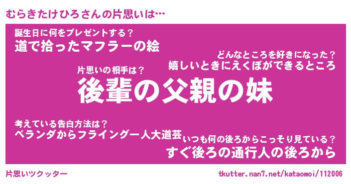| 胡散臭い通販商品みたいなあだ名 | 『モテモテ間違いなし水晶球…その名も「むらきたけひろ」』 |