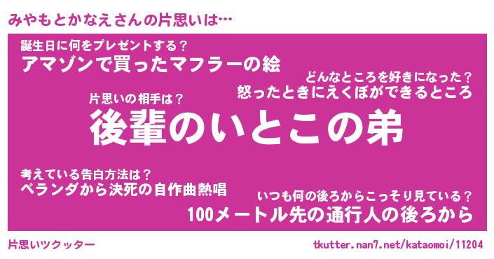 | ヘコむあだ名 | 『みやにゅー』『酢こんぶ』 |