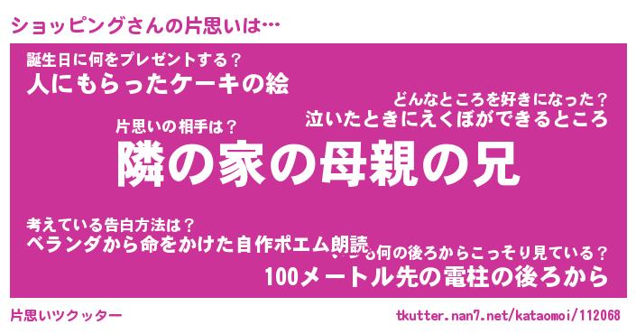| 男性向けラノベタイトル風あだ名 | 『ショッピングの憂鬱』 |