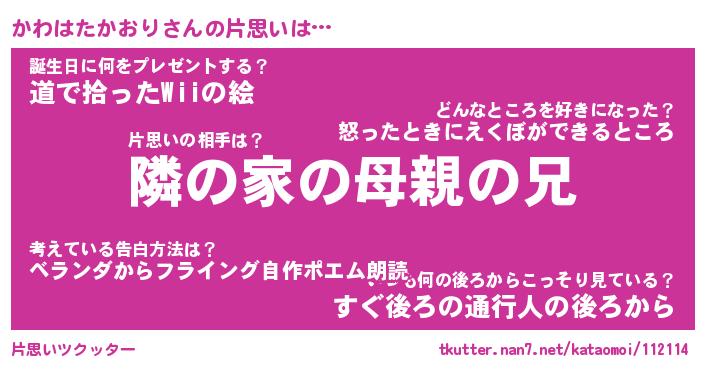 | ヘコむあだ名 | 『かわにー』『なまこ酢』 |
