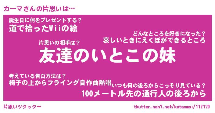 | 意味不明あだ名 | 『ペロリンカーマ』『カーマフォーエバー』 |