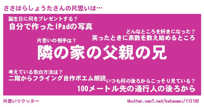 | 胡散臭い通販商品みたいなあだ名 | 『必ず成功するブレスレット…その名も「ささはらしょうた」』 |