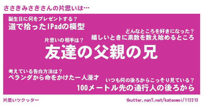 | ヘコむあだ名 | 『ささにゅー』『牛乳』『ささぷりん』 |