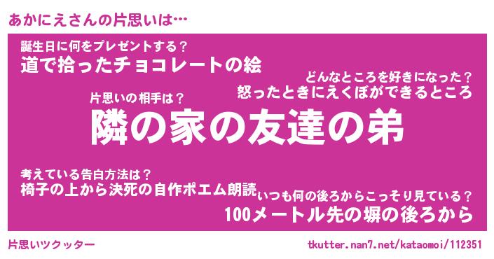 | 意味不明あだ名 | 『ペロリンあかにえ』『永久保存あかにえ』 |