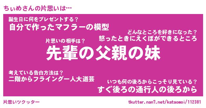 | ツイッター | ちぃめさんのツイッターID『katatsumuri_star』 |