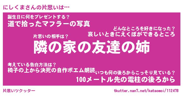 | 意味不明あだ名 | 『ペロリンにしくま』『永久保存にしくま』 |