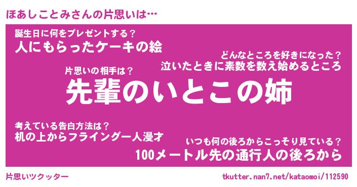 | 伝説のあだ名 | 『不死鳥のスナイパーほあしことみ』 |