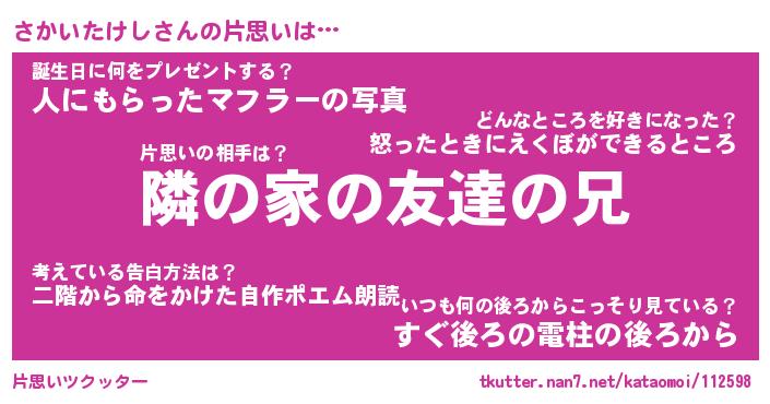 | 男性向けラノベタイトル風あだ名 | 『さかいたけしの憂鬱』 |