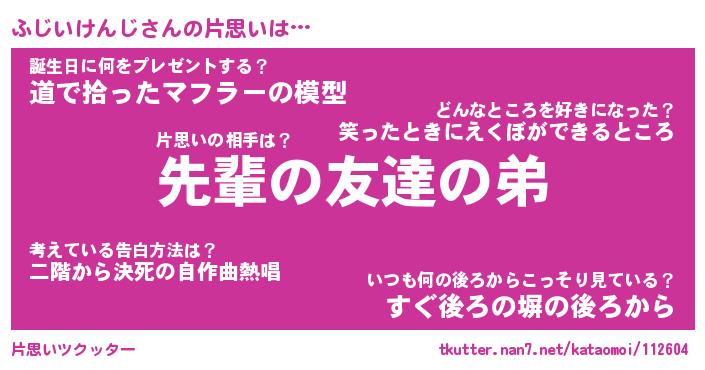 | 男性向けラノベタイトル風あだ名 | 『ふじいけんじの憂鬱』 |