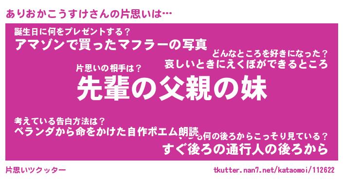 | 男性向けラノベタイトル風あだ名 | 『ありおかこうすけの憂鬱』 |