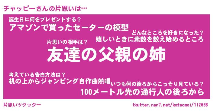 | ヘコむあだ名 | 『チャふぇ~』『なまこ酢』 |