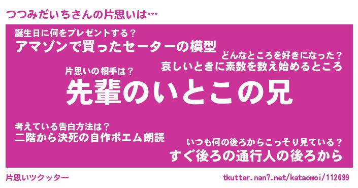 | 胡散臭い通販商品みたいなあだ名 | 『モテモテ間違いなし霊験あらたかなお札…その名も「つつみだいち」』 |
