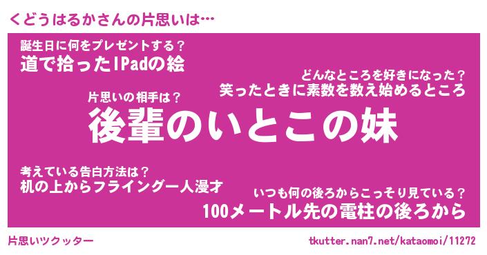 | 胡散臭い通販商品みたいなあだ名 | 『モテモテ間違いなし水晶球…その名も「くどうはるか」』 |