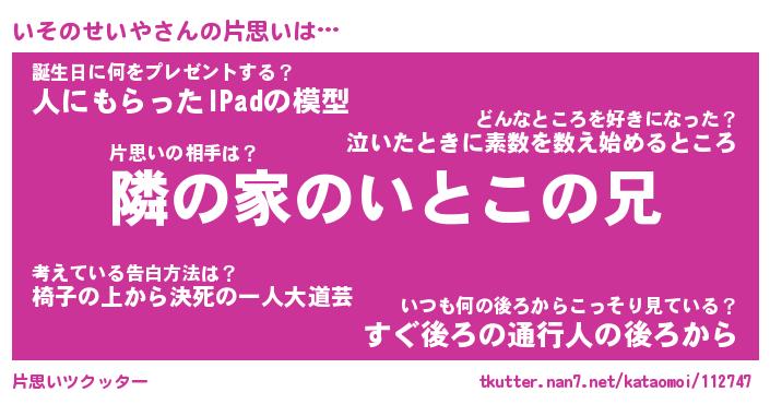 | 胡散臭い通販商品みたいなあだ名 | 『必ず成功する水晶球…その名も「いそのせいや」』 |