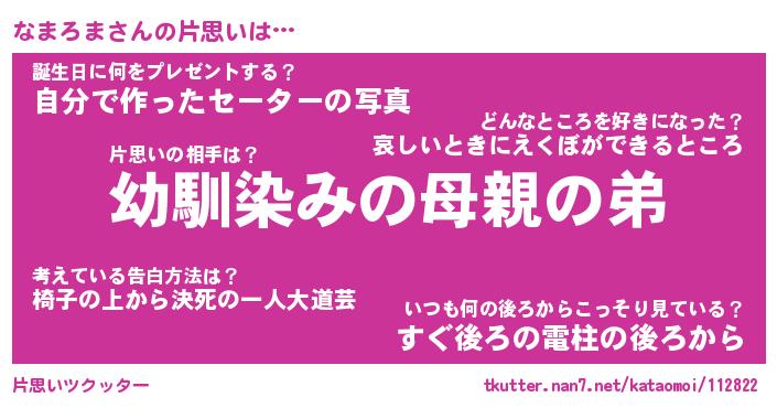 | 2回繰り返すあだ名 | 『なまなま』『ななまま』『うずうず』 |