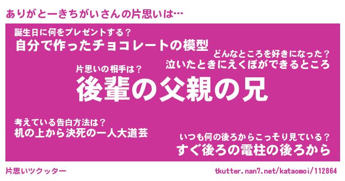 | ツイッター | ありがとーきちがいさんのツイッターID『dendenmushi_star』 |