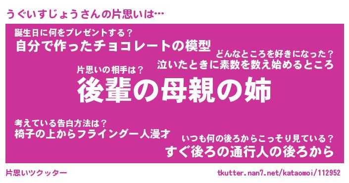 | ヘコむあだ名 | 『うぐふぇ~』『つくし』『うぐっぺ』 |