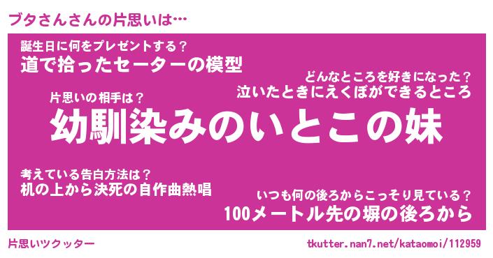| 2回繰り返すあだ名 | 『ブタブタ』『ブブタタ』『うねうね』 |