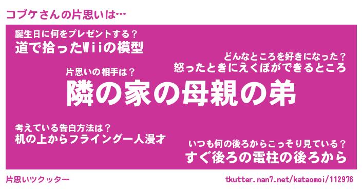 | ヘコむあだ名 | 『コブにー』『牛乳』『コブお』 |