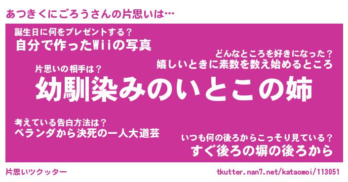 | 男性向けラノベタイトル風あだ名 | 『あつきくにごろうの憂鬱』 |