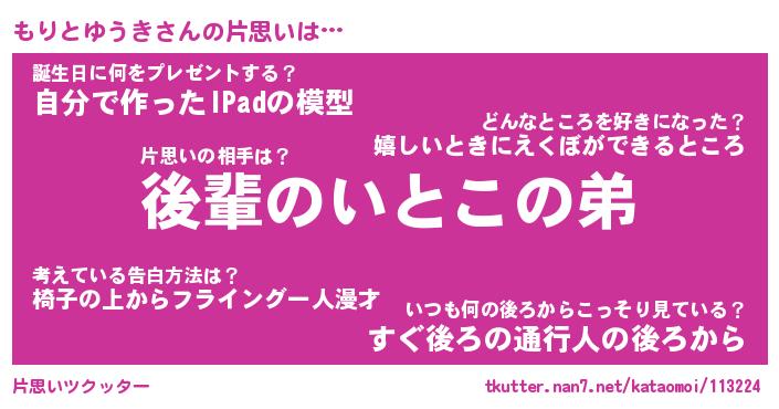| ヘコむあだ名 | 『もりにゅー』『牛乳』『もりっぺ』 |