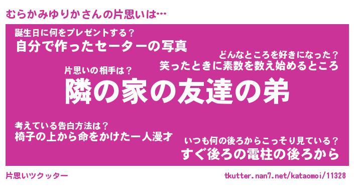 | 女子向けラノベタイトル風あだ名 | 『(仮)むらかみゆりかのやんごとなき事情』 |