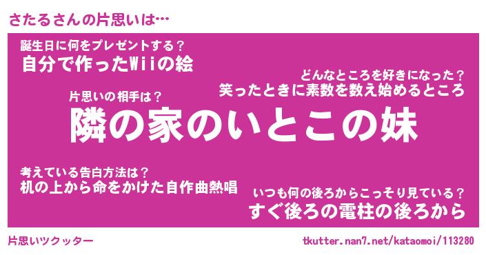 | ヘコむあだ名 | 『さたもー』『つくし』『さたを』 |
