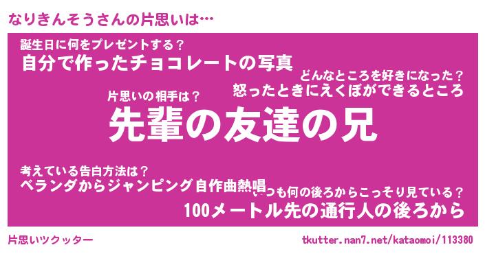 | ヒーロー風カッコイイあだ名 | 『スーパーナリキンソウ』『魔戒騎士ナリ』 |