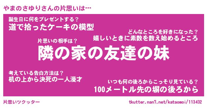 | 伝説のあだ名 | 『伝説のスナイパーやまのさゆり』 |