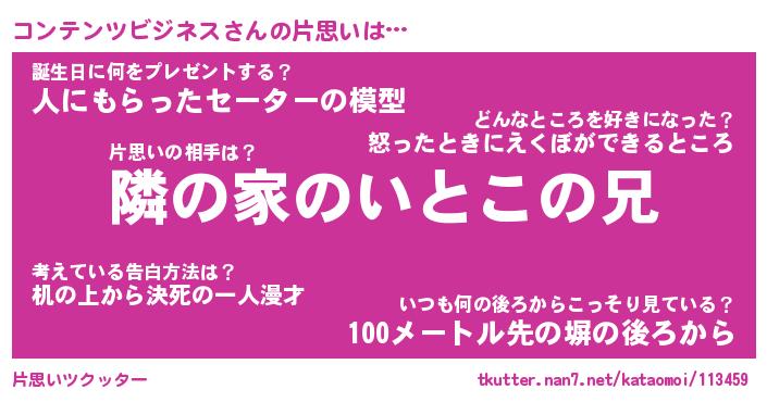 | 男性向けラノベタイトル風あだ名 | 『コンテンツビジネスの憂鬱』 |