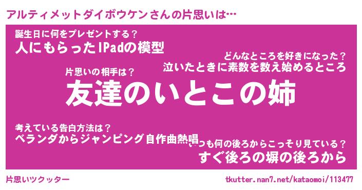 | 胡散臭い通販商品みたいなあだ名 | 『億万長者になれる水晶球…その名も「アルティメットダイボウケン」』 |