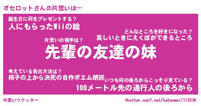 | ファンタジー風あだ名 | 『オセフェル』『エターナルオセロットー』 |
