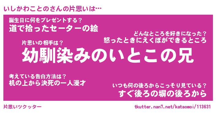 | 伝説のあだ名 | 『伝説のスナイパーいしかわことの』 |