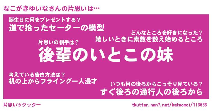 | 意味不明あだ名 | 『ペロリンなこがきゆいな』 |