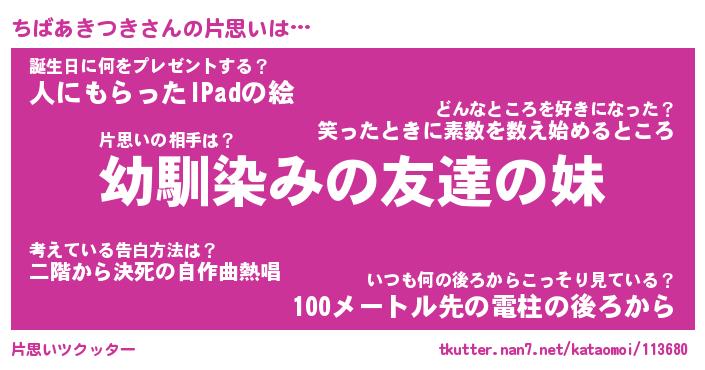 | 伝説のあだ名 | 『伝説のスナイパーちばあきつき』 |