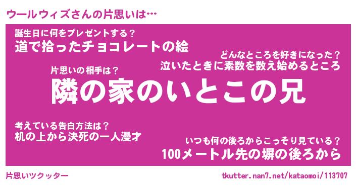| 男性向けラノベタイトル風あだ名 | 『ウールウィズの憂鬱』 |