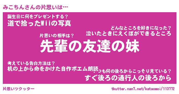 | ヘコむあだ名 | 『みこっふぃ~』『豆乳』『みこっぺ』 |