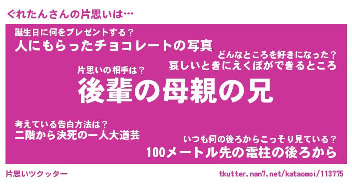 | ヘコむあだ名 | 『ぐれにー』『酢こんぶ』 |