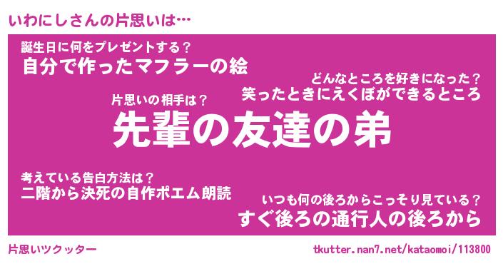 | 胡散臭い通販商品みたいなあだ名 | 『モテモテ間違いなし霊験あらたかなお札…その名も「いわにし」』 |