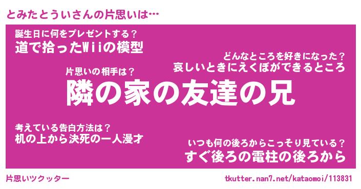 | ポケモン風あだ名 | 『トミチュウ』『トミタダネ』 |