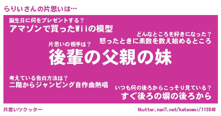 | ヘコむあだ名 | 『らりふぇ~』『なまこ酢』 |