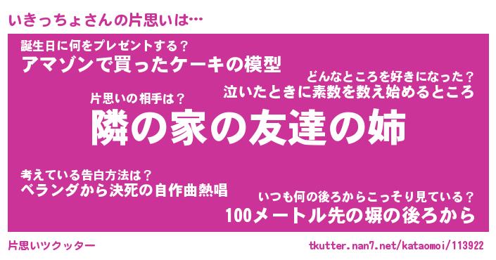 | 男性向けラノベタイトル風あだ名 | 『いきっちょの憂鬱』 |