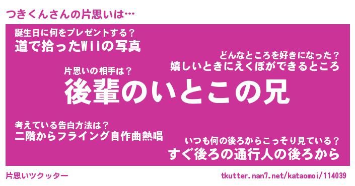 | ヒーロー風カッコイイあだ名 | 『スーパーツキクン』『魔戒騎士ツキ』 |