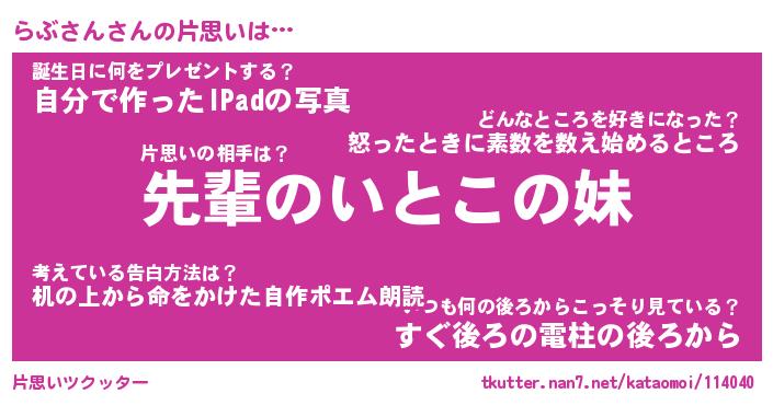 | ヘコむあだ名 | 『らぶもー』『つくし』『らぶぷりん』 |